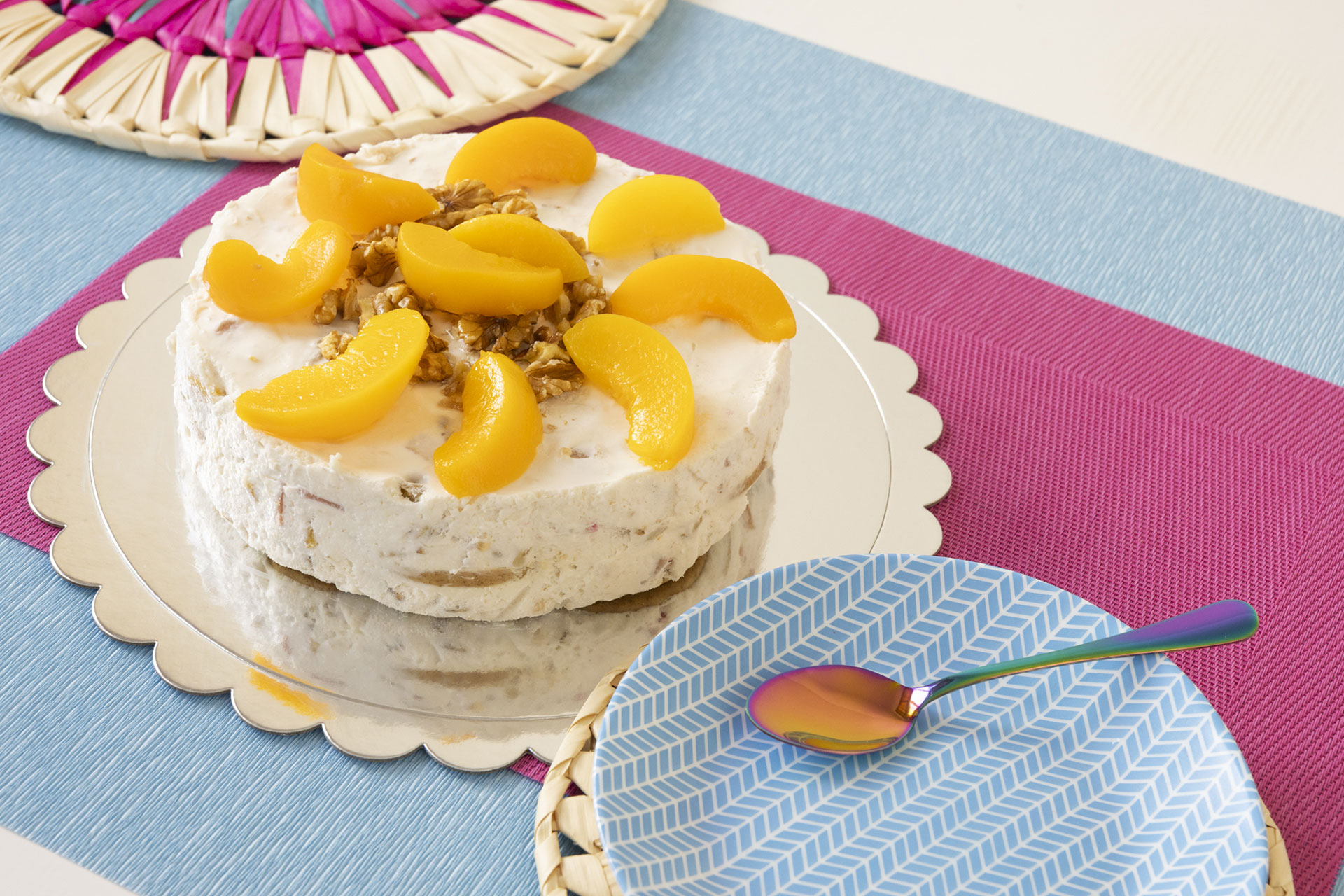Antes de servir, decora con más nueces y gajos de melocotón en su jugo Del Monte para darle un toque fresco y vistoso.
